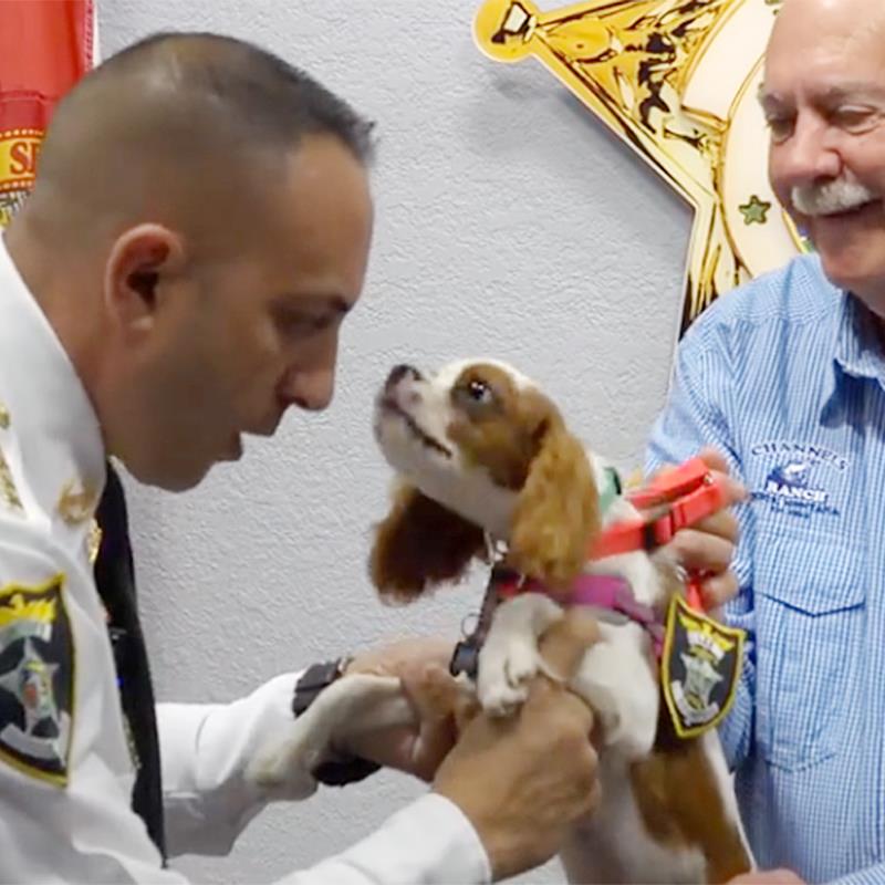 Gunner the 4-month-old puppy will help Florida's Lee Country Sheriff's Office teach kids about alligator safety, school bus safety, and...