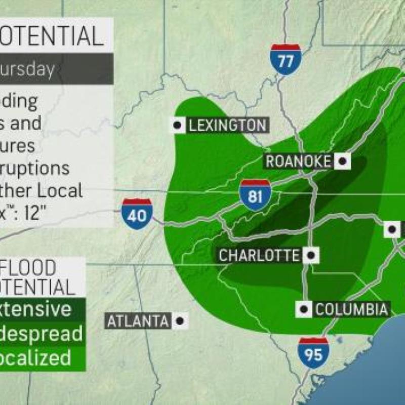 An onslaught of heavy rain threatens to trigger extensive life-threatening flooding in the southern Appalachians of North Carolina and Virginia...